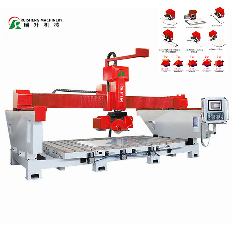 5 Axis Cnc Stone Cutting Machine, a versatile and efficient tool for precise cutting of stone materials. With its ability to make vertical, inclined, and horizontal cuts using disc blade, this machine is perfect for a wide range of cutting applications. Whether you need to make straight cuts or curves, this stone cutting machine can handle it all with ease.
